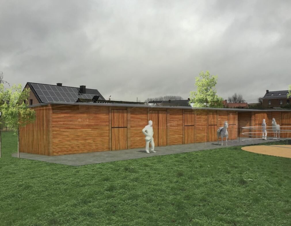 Des boxes en bois spacieux et fonctionnels, pensés pour le confort des chevaux. Une piste d’entraînement intégrée avec soin dans son environnement naturel. Un lieu durable, harmonieux et inspirant pour cavaliers et montures.