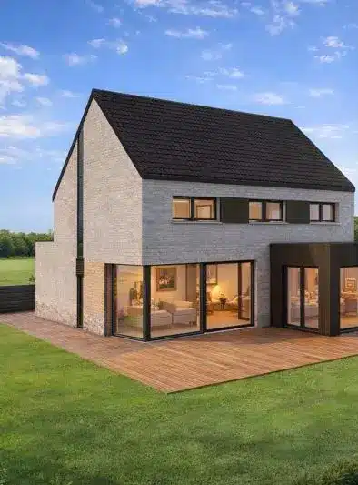 Ce projet de construction situé dans le Hainaut illustre parfaitement notre philosophie : créer une architecture sobre, lisible et durable.